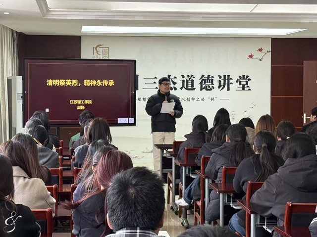 周杨老师首先与同学们一道在常州革命烈士陵园向革命烈士敬献花篮,随后在报告厅为参加活动的同学深刻阐述了清明祭扫的意义,并带领同学们回顾了常州三杰等革命先辈的光辉事迹,勉励青年学子要永远铭记先烈功绩,传承红色血脉,将缅怀之情转化为奋进动力。